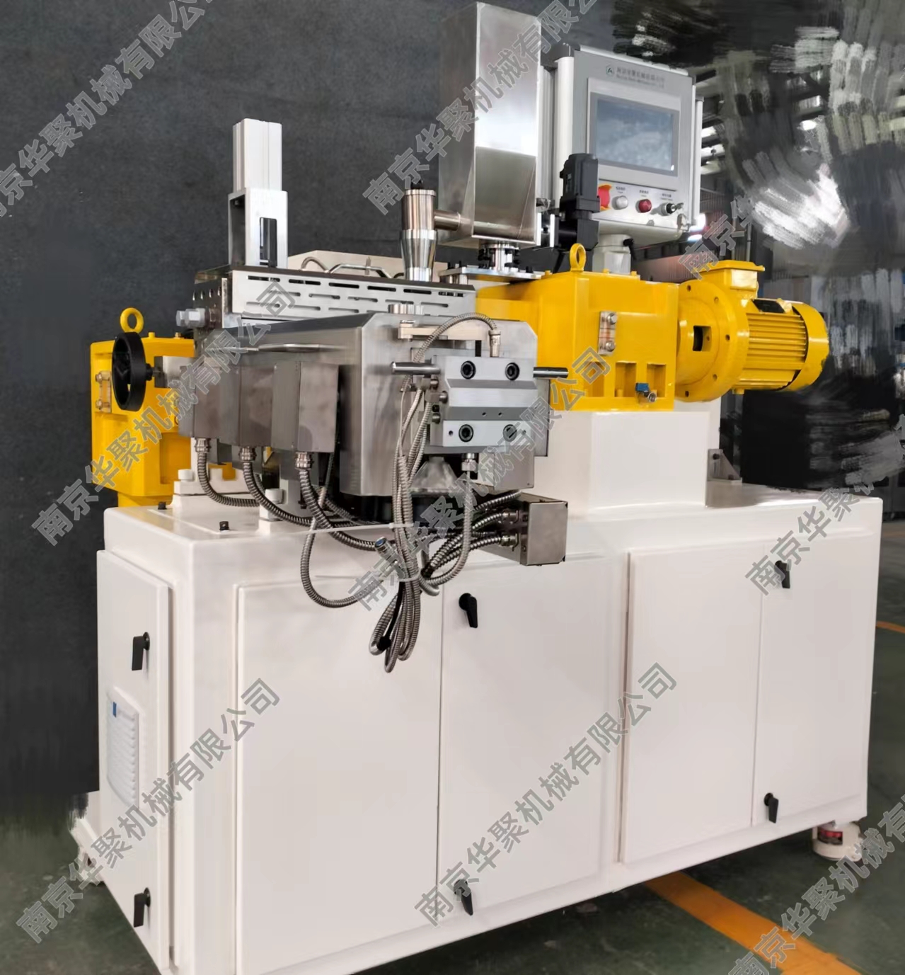 1、占地面積小,主機(jī)長寬高為1600X1350X1650mm,帶有移動腳輪。 2、集成連續(xù)密煉與雙螺桿的優(yōu)勢特點(diǎn),連續(xù)式擠出,方便各種研發(fā)測試使用。 3、能耗低,裝機(jī)裝機(jī)功率22KW,實(shí)際操作功耗更低,類似一臺中央空調(diào)功率。 4、產(chǎn)量范圍1-10Kg/h,方便少量物料測試,伺服電機(jī)喂料驅(qū)動更穩(wěn)定精確。 5、一體化設(shè)計,電控冷卻系統(tǒng)全部集成,無需額外安裝,接電即用。 6、連續(xù)密煉機(jī)可翻轉(zhuǎn)腔體和雙螺桿快開機(jī)頭設(shè)計,方便清理及檢查維護(hù)。 7、全系統(tǒng)安全連鎖,觸摸屏操作,多處安全停機(jī)保護(hù),使用更放心。 8、整機(jī)1噸,方便裝卸。